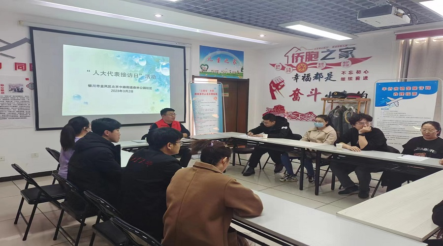 为了进一步密切人大代表与选民的联系,2023年3月2日,北京中路街道森林公园社区开展“人大代表接访日”活动。金凤区人大代表田进财走进森林公园社区与10名居民代表见面。