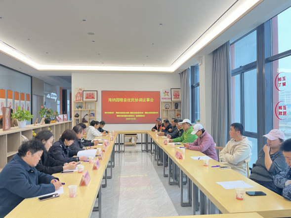 此次海纳公园音乐噪声扰民协调议事会,围绕群众反映强烈的公园噪声扰民问题联合多部门进行协商,共同商讨长效可行的解决措施。社区与辖区派出所在前期摸底排查工作的基础上,多次进行了现场劝导工作,但噪音问题依旧存在。住在江南学府二期的居民代表反映,公园每天早晨与晚上都会传出音乐声,一些音乐爱好者聚在一起,伴随着音响里的歌声,或跳舞,或手拿话筒放声高歌,健步走队伍吹哨子播放音乐声音,秧歌队唢呐声此起彼伏,严重影响了周边居民的休息。