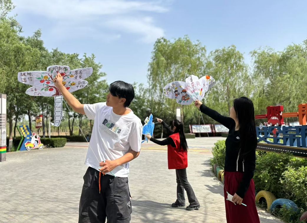与此同时,风筝绘制区同样热火朝天。志愿者们以“喜事简办”“厚养薄葬”等文明标语为灵感,在风筝上挥毫泼墨,创作出独具特色的“新风尚”风筝。大二学生黑明聪精心设计了一棵“文明树”,树上结满“节俭”“孝亲”等果实图案。“希望这些理念能像风筝一样,飞进每家每户。”他认真地说道。