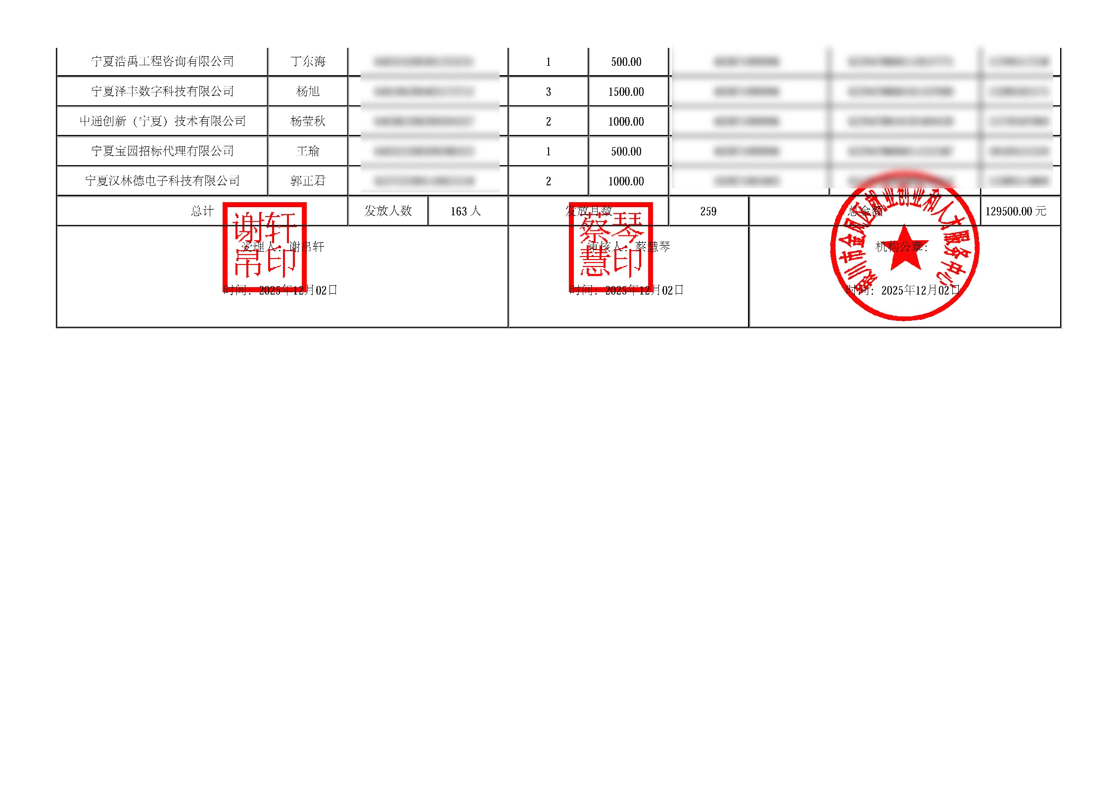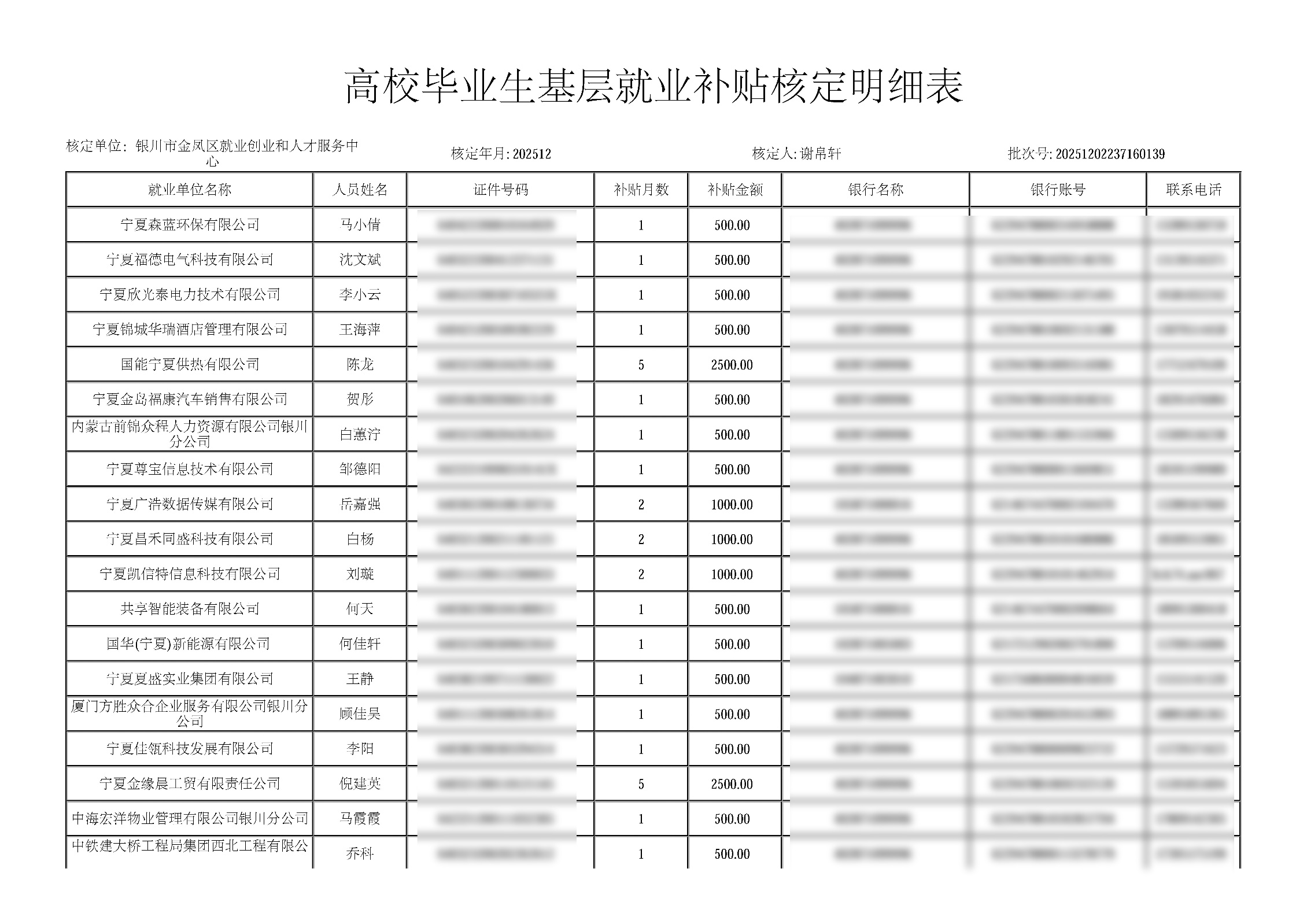 为进一步鼓励引导高校毕业生到城乡基层和中小微企业就业,按照《自治区人力资源和社会保障厅 教育厅 财政厅关于做好2025年支持高校毕业生基层就业工作的通知》(宁人社发〔2025〕71号)文件要求,经初审,现就马小倩、沈文斌等163人发放高校毕业生基层就业补贴129500元向社会公示,公示期为12月3日至12月9日(5个工作日)。