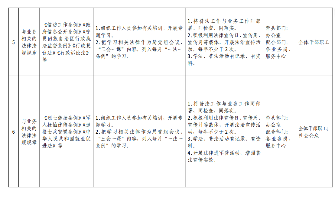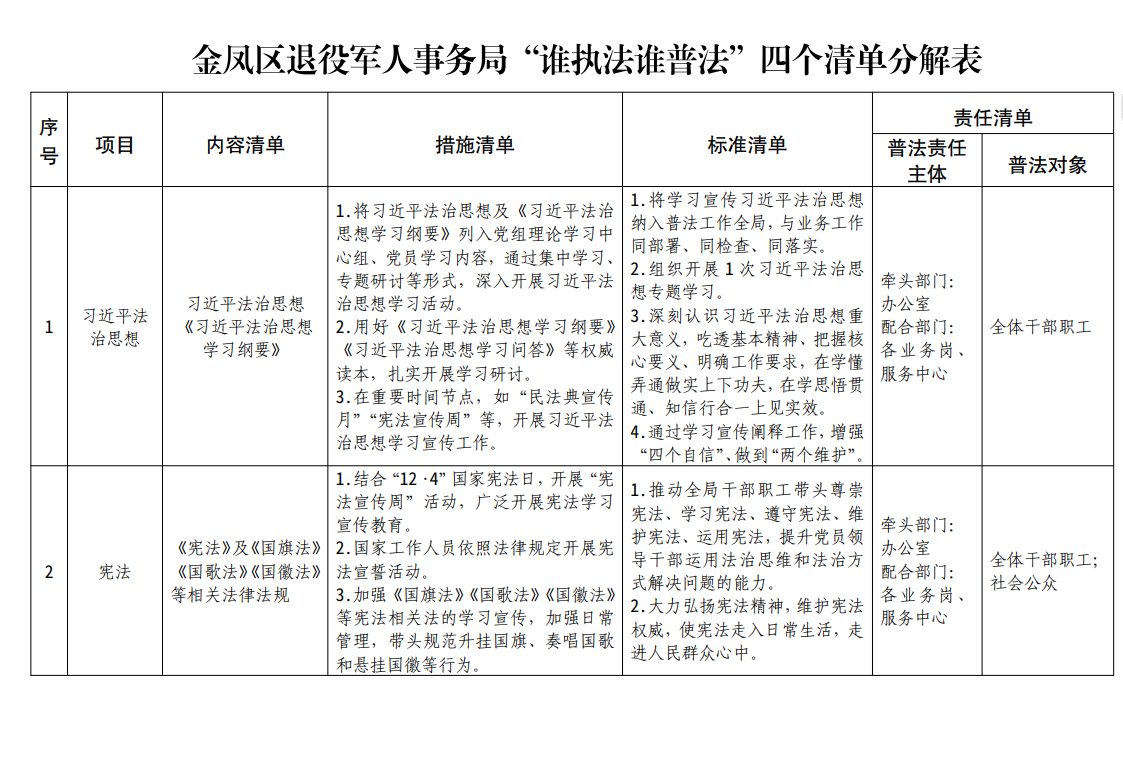 金凤区退役军人事务局“谁执法谁普法”四个清单分解表