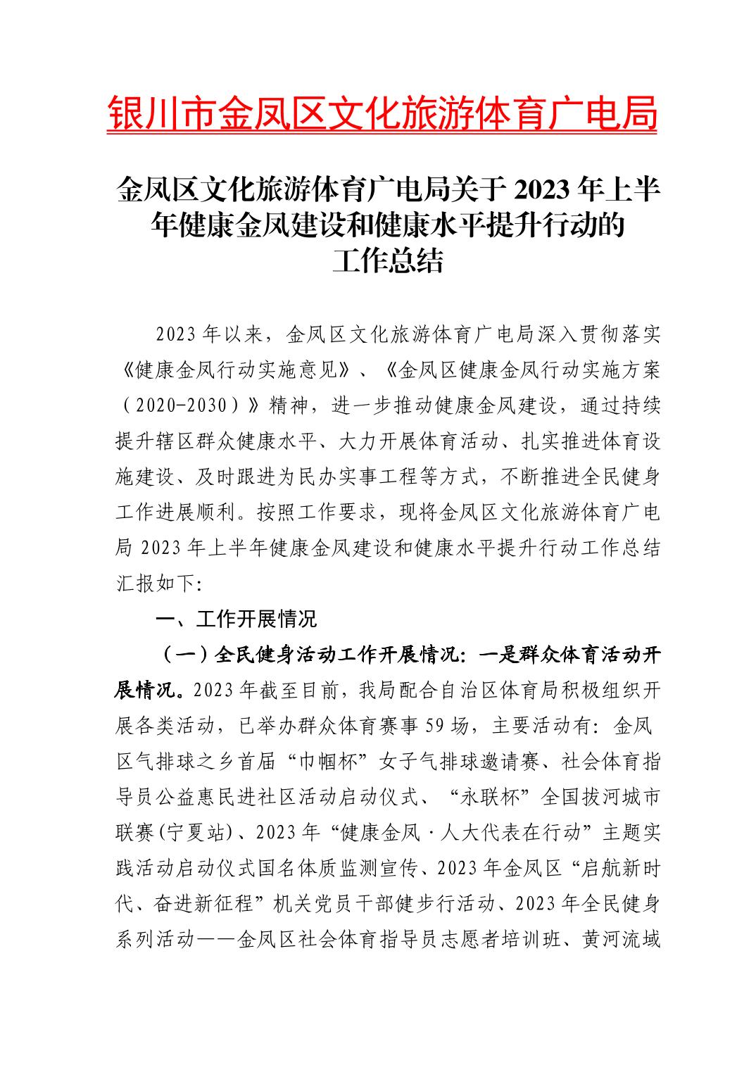 金凤区文化旅游体育广电局关于2023年上半年健康金凤建设和健康水平提升行动的工作总结