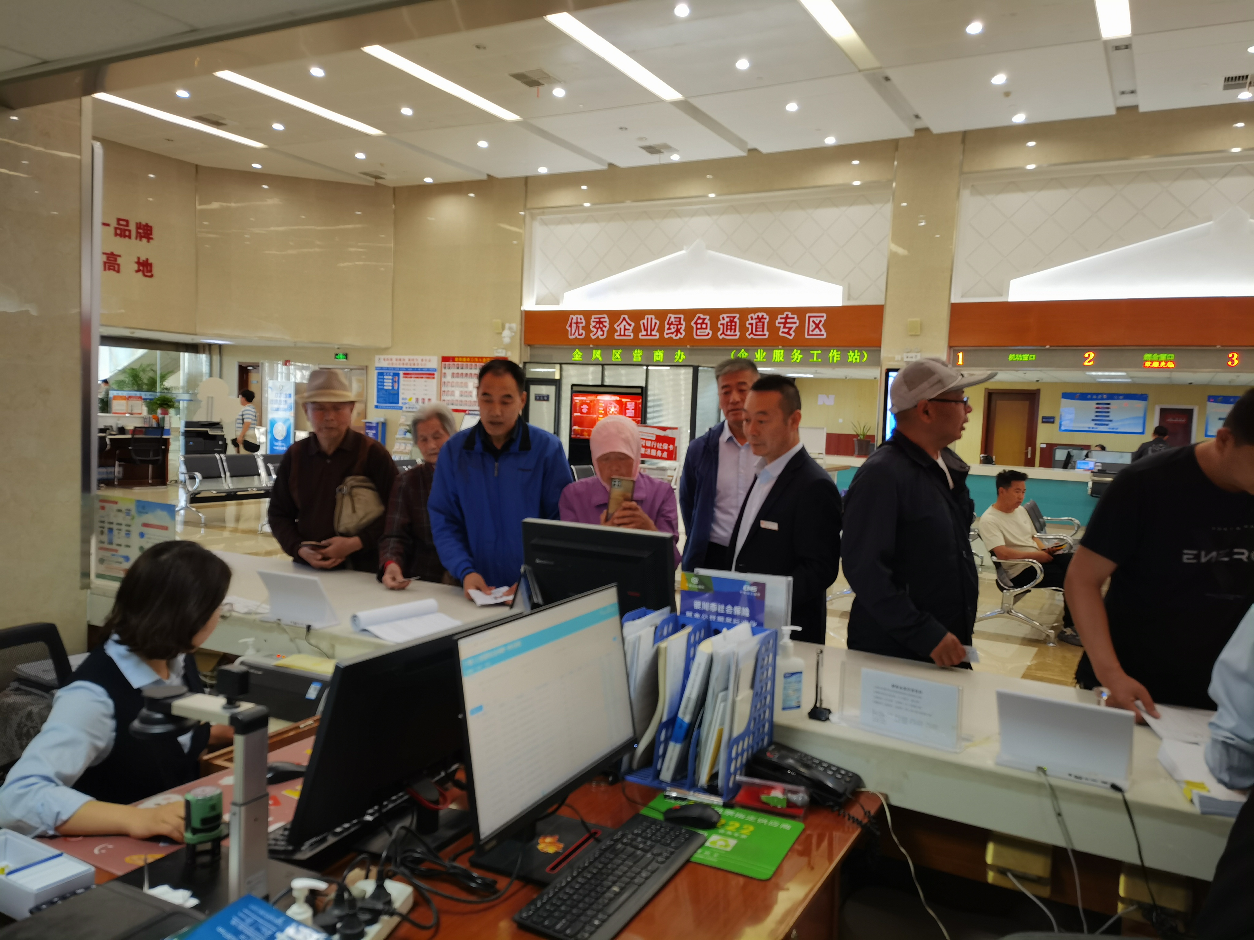 银川市市民大厅5楼C厅,金凤区社保中心主任带领各位代表来到人社退休综合窗口亲身体验“走流程”。,通过体验灵活就业人员退休办理资料审核填报,补缴核定相关费用,档案资料整理,公示信息经办全过程,让代表们详细了解社保业务经办规程、办理实效及窗口经办服务人员是否精通业务、服务态度是否亲民、办事流程是否精简、是否存在“多次跑”、是否“办好一件事”,真正让代表们零距离感受到社保服务温度。