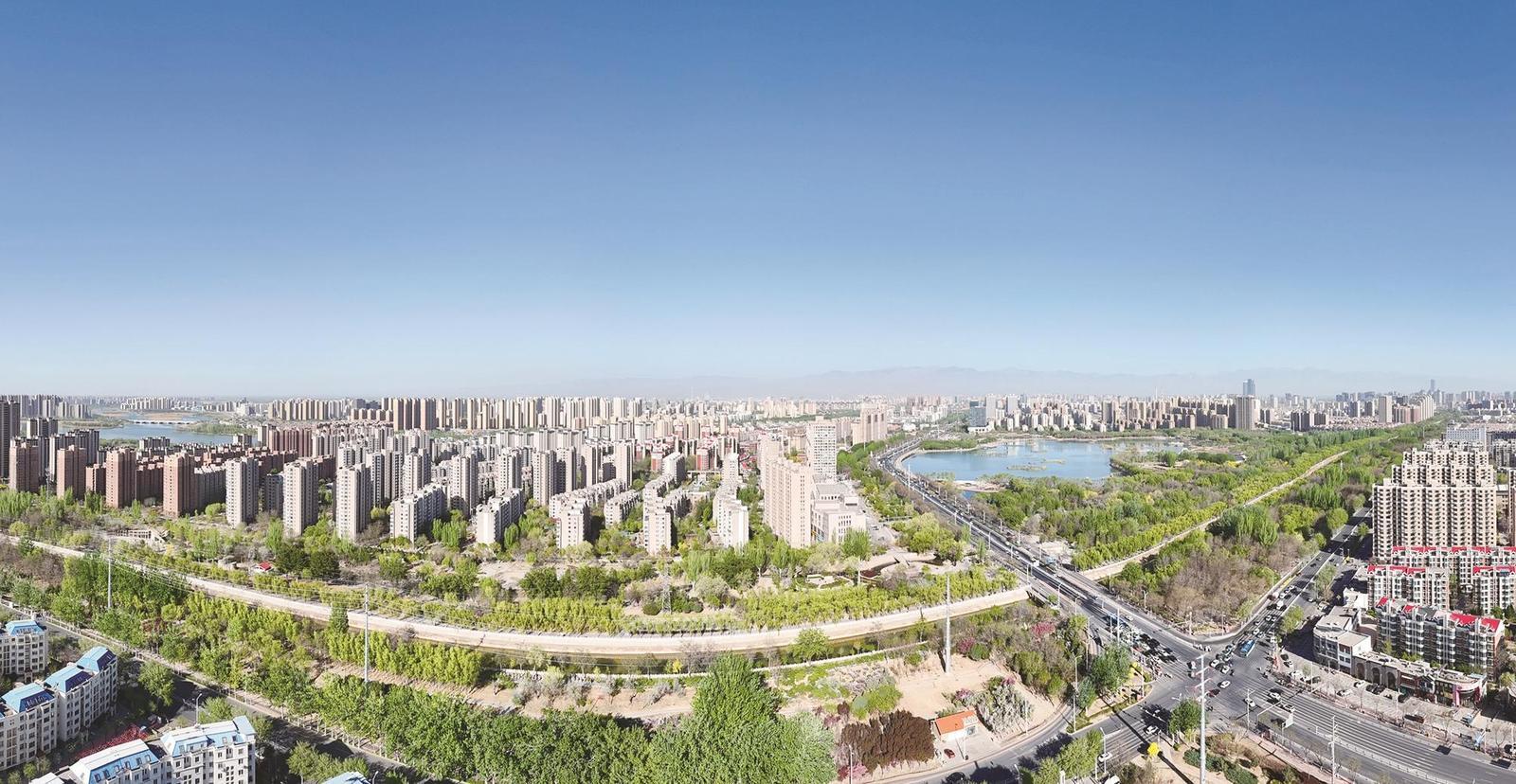 4月14日,清晨的银川天空蔚蓝、绿树成荫。
